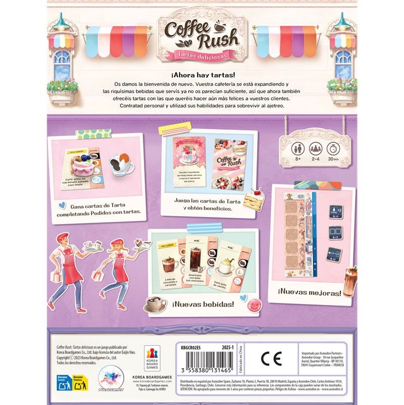 Os damos la bienvenida de nuevo. Vuestra cafetería se está expandiendo y las riquísimas bebidas que servís ya no os parecían suficiente, pasa que ahora también ofrecéis tartas con las que queréis hacer aún más felices a vuestros clientes. Contratad personal y utilizad sus habilidades para sobrevivir al ajetreo.