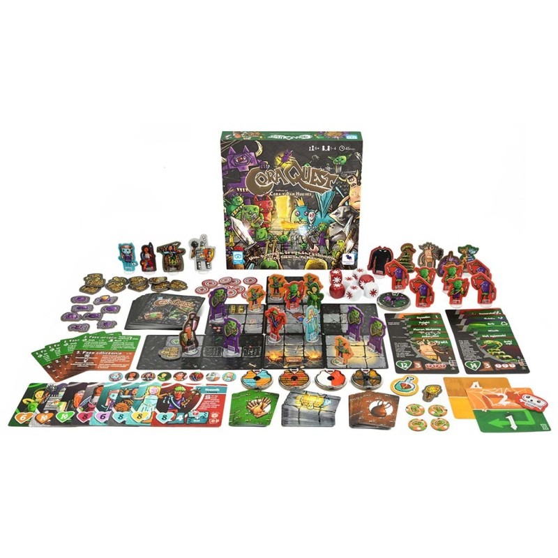 Una vez decidida la aventura, os adentraréis en la mazmorra para explorarla sala por sala. Furiosos orcos y trampas letales os esperan a la vuelta de cada esquina, pero tendréis que avanzar con valentía si queréis superar la aventura. Tened cuidado: si cualquiera de los héroes es derrotado, todos perderéis la partida. Después de unas cuantas partidas a CoraQuest, puede que os apetezca crear vuestras propias aventuras, héroes y enemigos con la guía que encontraréis en la caja.