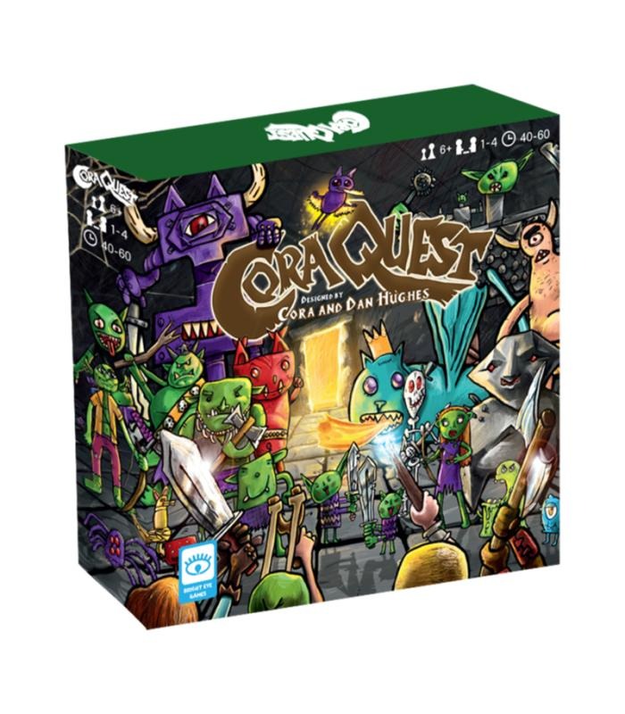 CoraQuest es un juego de mesa cooperativo emocionante y accesible en el que los jugadores trabajan juntos para guiar a cuatro aventureros que exploran una mazmorra, evitan trampas, encuentran tesoros, luchan contra monstruos y, a veces, rescatan a un gnomo llamado Kevin.