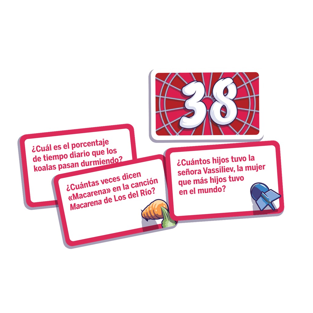 Objetivo: Deshaceos de vuestras cartas de Pregunta adivinando cuál de ellas se acerca más al objetivo. ¡Gana el primer equipo al que solo le quede una carta!