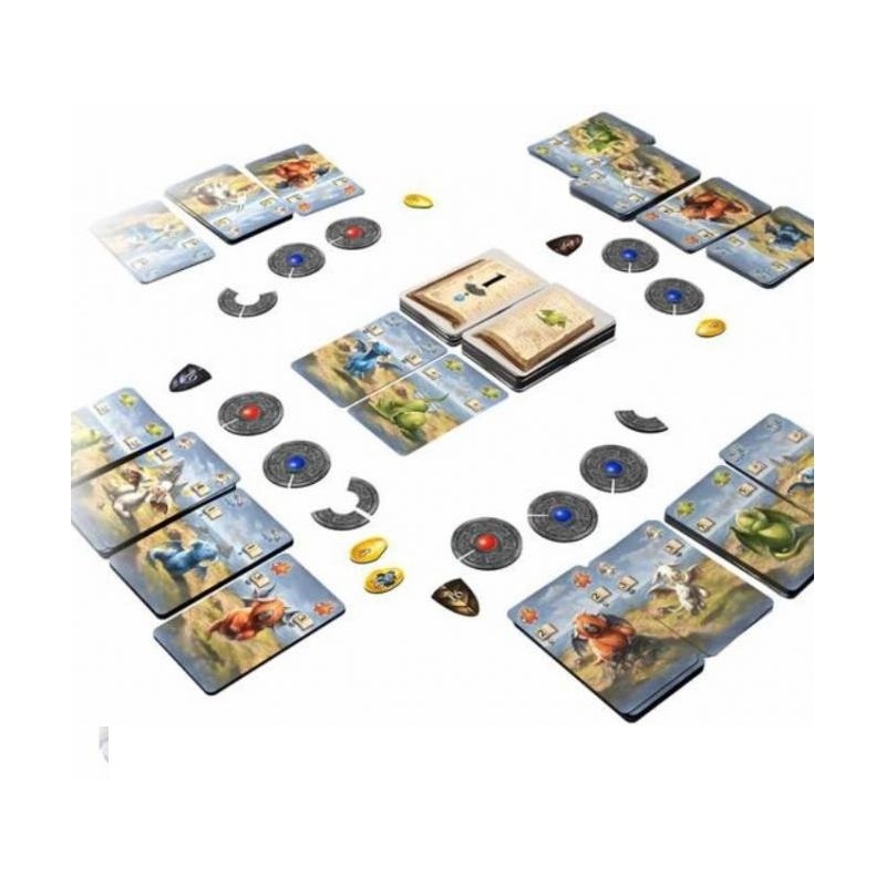 En Dragonkeepers, los jugadores compiten entre sí como magos. Dos pilas de cartas forman el «Libro Mágico», que indica cuáles y cuántos dragones se pueden pastorear. Con cada carta que se toma, esta información cambia, pero afortunadamente puedes lanzar hechizos y devolver tus cartas al Libro Mágico para cambiarlo a tu favor y puntuar. ¿Pero a cuál de tus dragones puedes dedicarte a lanzar hechizos para que sea el dragón que necesitas?