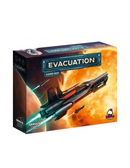 Evacuation es un juego de mesa que nos lleva a un sistema solar en el cual el Sol se está expandiendo, abrasando tu planeta. Pronto toda la vida morirá. Pero existe esperanza, un nuevo planeta, rico en la vida vegetal que proporcionará oxígeno y alimento a tu población. Tienes los medios para llegar allí. Es tiempo de partir.