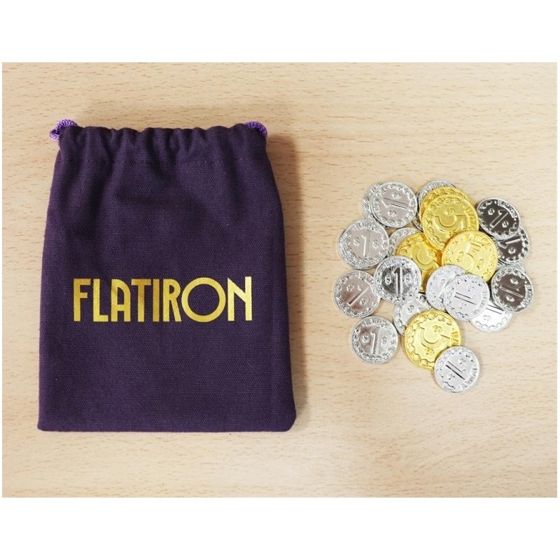 Flatiron: Monedas Metalicas es un accesorio para el juego de mesa Flatiron con el que podrás añadir unas bonitas monedas metálicas a tus partidas.