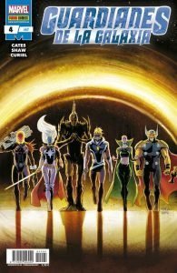 Entran los Guardianes Oscuros. El nuevo escuadrón cósmico, formado por algunos de los tipos y tipas más duros de la galaxia, se dispone a asesinar a Gamora. ¿Qué pueden hacer los Guardianes de la Galaxia? ¡¡Tratar de impedirlo!!