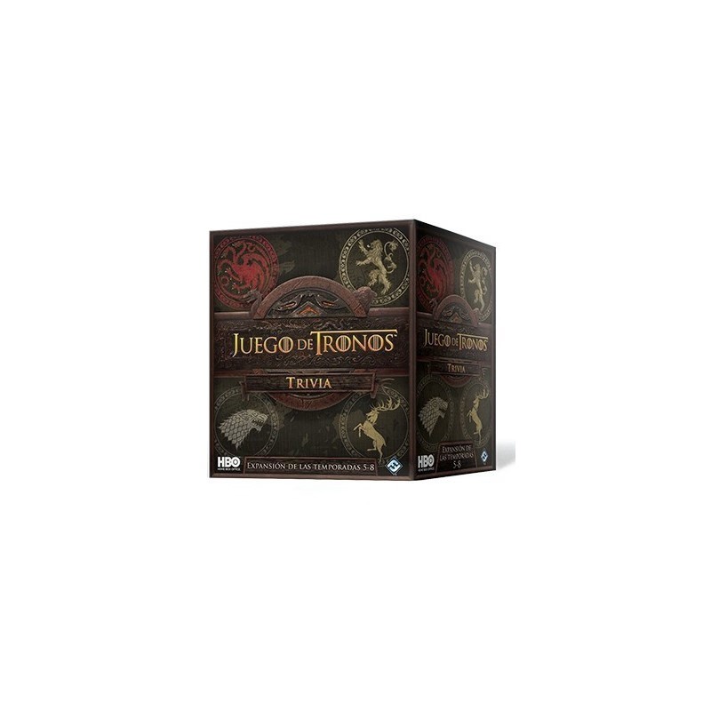 Juego de tronos trivia: Expansion de las temporadas 5-8 es una expansión para el juego de mesa Juego de tronos Trivia, con el que podrás ampliar tu conocimiento de la aclamada serie Juego de Tronos con contenido y preguntas adicionales sobre las cuatro últimas temporadas de la producción HBO.