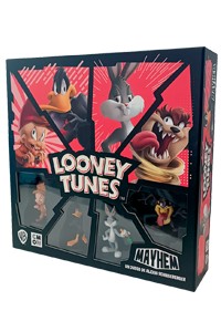 Looney Tunes Mayhem es un juego de escaramuzas familiar para 2 a 4 jugadores protagonizado por los populares personajes de los dibujos animados de Looney Tunes. En él, dos equipos libran batallas con el disparatado arsenal de la marca ACME. Elige a tus aliados, combina sus capacidades y muévete por un tablero preparado al azar compuesto por ubicaciones memorables de los dibujos animados, cada una con un efecto diferente. ¡Pero mucho ojo con las estratagemas y las trampas que podrías encontrarte en tu próximo movimiento! Incluye varios modos de juego y reglas especiales. ¡Diversión garantizada para toda la familia! CONTENIDO · 4 FIGURAS DE TOONS YA PINTADAS: BUGS BUNNY, PATO LUCAS, ELMER GRUÑÓN, DEMONIO DE TASMANIA · 4 HOJAS DE TOON · 10 PIEZAS DE UBICACIÓN · 4 DADOS DE ACTIVACIÓN · 1 DADO MAYHEM · 4 ANILLAS PARA LAS PEANAS · 22 CARTAS MAYHEM · 95 FICHAS · 1 REGLAMENTO