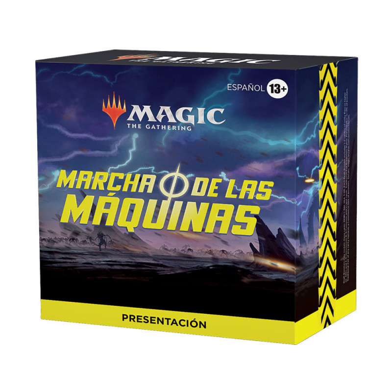 El Pack de Presentación de Marcha de las máquinas contiene 6 sobres de Draft de Marcha de las máquinas, 1 carta rara o rara mítica foil tradicional con el año estampado, 1 carta rara mítica nueva (foil tradicional en el 18 % de los Packs de Presentación), 1 tarjeta con un código para desbloquear 6 sobres de Marcha de las máquinas en Magic: The Gathering Arena (solo disponible en determinadas regiones), 1 caja guardamazo y 1 contador de vidas Spindown.