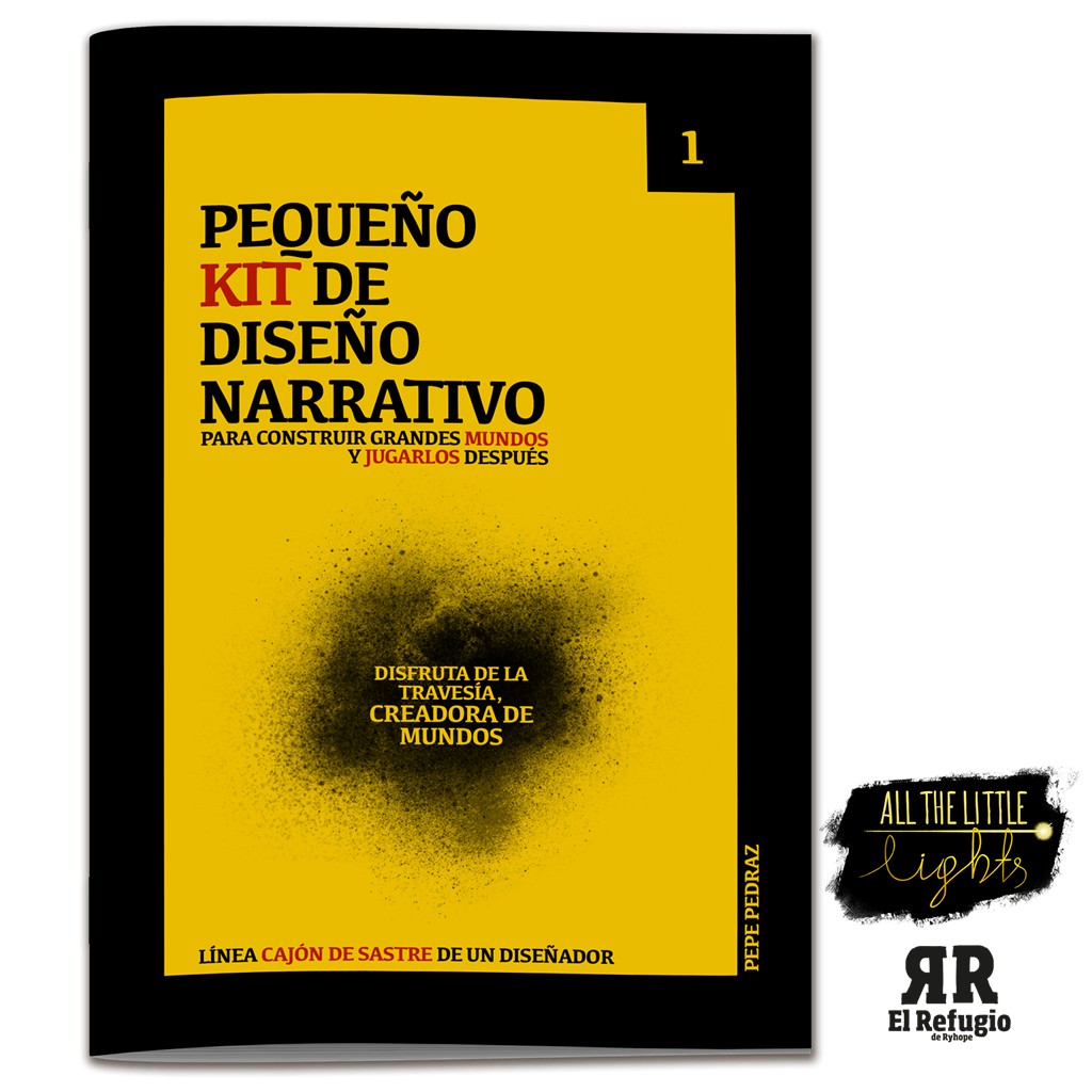 En 2019 salió la primera edición física de este Pequeño Kit de diseño narrativo con el objetivo de facilitar la construcción y elaboración de historias de cualquier tipo. En 2022, se edita una nueva edición corregida, con cientos de pruebas realizadas en talleres, formaciones y clases. La edición original era una caja con tarjetas, hemos querido convertirlo en un pequeño zine con formato «elige tu propia aventura» para que el precio fuera más accesible para todos. Este libreto pretende ser el primero de una serie de 4 que aúna el marco de referencia en diseño: Narrativa, Mecánicas, Medio, Experiencia.