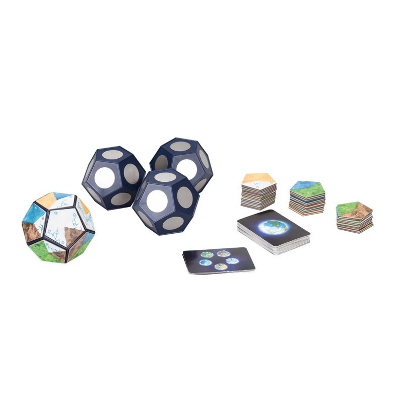 Planet es un juego de mesa con el que podrás ver como cobra vida un planeta ante tus propios ojos. Haz crecer sus cordilleras y desiertos o expande sus bosques, océanos y glaciares para posicionar estratégicamente sus continentes y formar ambientes propicios para que surja la vida animal. ¡Así conseguirás crear el planeta más poblado! ¡Gana quien más puntos tenga!
