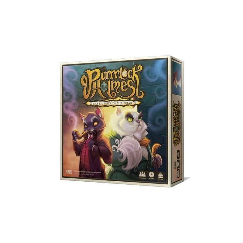 En el juego de mesa Purrrlock Holmes: Tras la pista de Miauriarty, el malvado Miauriarty está aterrorizando Londres, y le toca a Purrrlock Holmes detenerlo antes de que complete sus planes y se escape! Sin embargo, Purrrlock no puede hacerlo solo y como inspectores nuevos debéis ayudarle a detener a los miembros de la banda de Miauriarty.