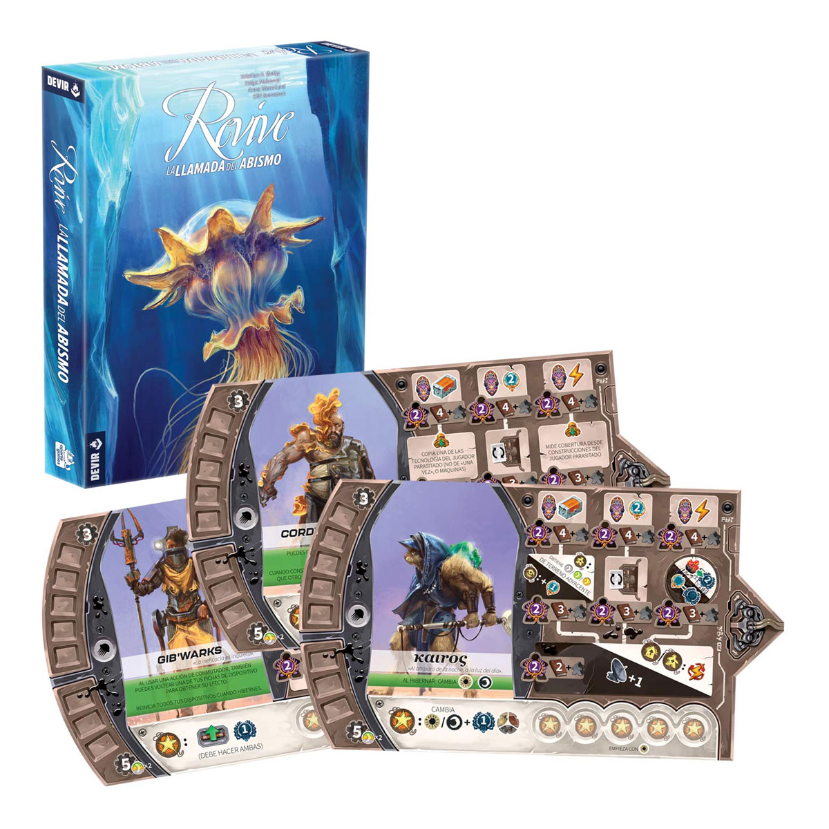 ¡Amplía el universo de Revive con nuevos componentes y mecánicas! Además de nuevas tribus, máquinas, cartas de habitante y módulos de inserción, la expansión La llamada del Abismo incorpora el nuevo marcador de devoción, que se añade al tablero central de juego, así como las poderosas cartas de Escifo, que te otorgarán habilidades muy útiles.