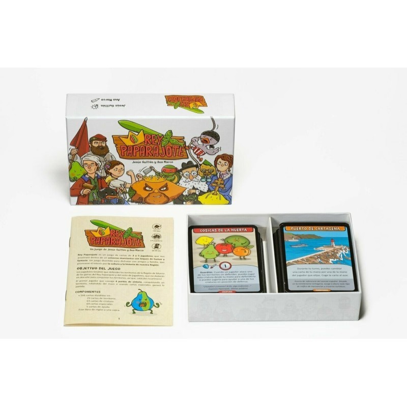 Rey Paparajote es un juego de cartas especial, es el primer juego de cartas 100% murcianico. Atrévete a adentrarte en un universo con toques de humor, magia y fantasía, metiéndote en la piel de un héroe con la misión de defender las tierras murcianas de las garras del Rey Paparajote y del resto de jugadores.
