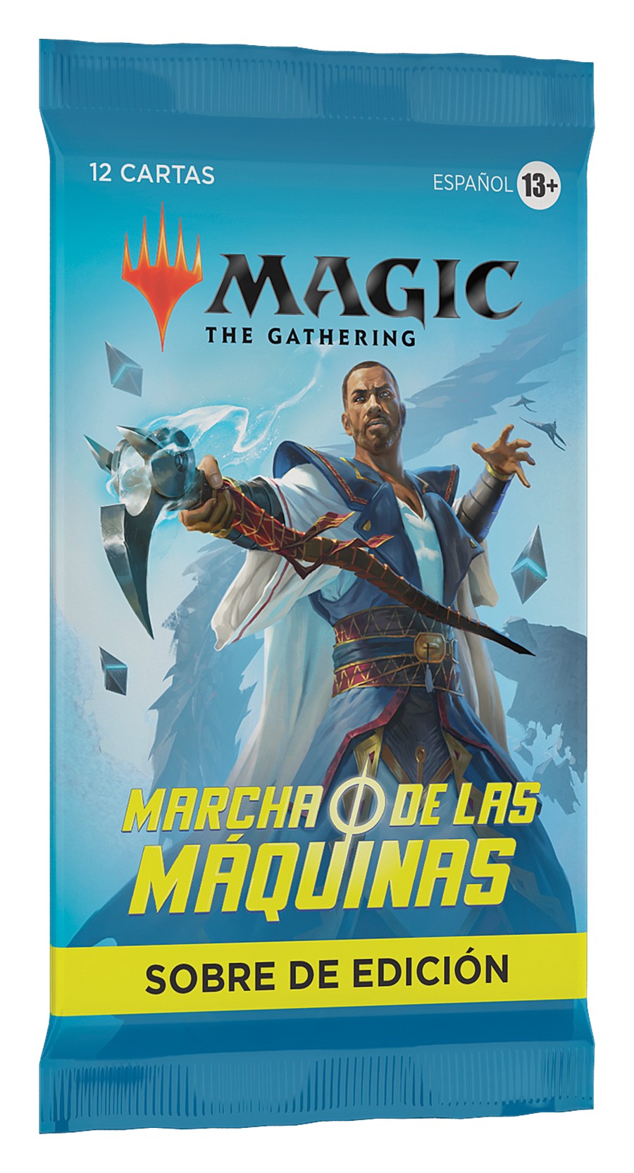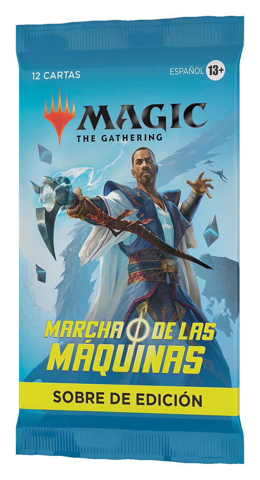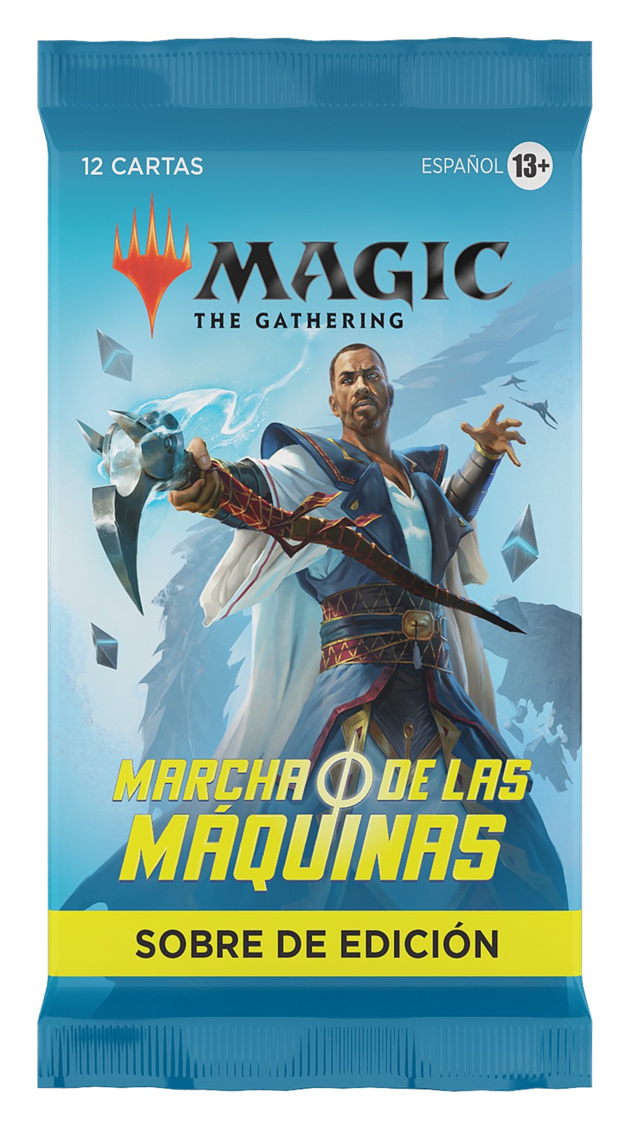 Cada sobre de edición de Marcha de las máquinas contiene 12 cartas de Magic, 1 carta de arte y 1 ficha, carta publicitaria, carta de ayuda o carta de la Lista (una carta especial de la historia de Magic que puede conseguirse en el 25 % de los sobres).